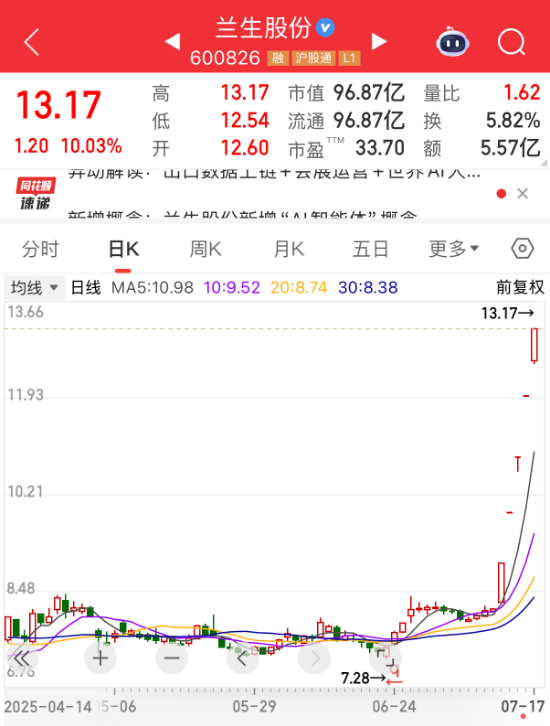兰生股份(600826)今日再度涨停,主力资金净流入1.06亿元,净流入额创2024年12月13日以来新高,已实现连续7日净流入,累计净流入2.28亿元。公司股价近5个交易日连续斩获涨停,今日盘后,公司再度发布股票交易风险提示公告称,公司关注到近期市场有关“稳定币”的概念关注度较高,经公司自查,公司目前未开展“稳定币”相关业务。除此之外,目前尚未发现其他对公司股票交易价格产生重大影响的媒体报道或市场传闻和涉及热点概念事项。